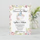 Fira den kommande ankomsten av ditt älskade barn med denna söta och förtjusande "Baby Shower by Mail" inbjudan. Denna inbjudan har en vacker liten björn från barnskogen som sover på en vacker vit moln dekorerad med blommor, med en ram av vårblommor och en mjuk grön bladverk bakgrund. Denna mall är perfekt för dem som bor på långt avstånd från nära och kära, men ändå vill göra det speciellt för mamman eller föräldrarna genom att överösa dem med kärlek och presenter. Alla texter är förarrangerade så att du kan anpassa dem enkelt och snabbt med dina detaljer för baby shower.