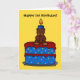 Perfekt kort för en liten pojkar födelsedag. Med en björn sitta på en stor tårta. Jag har också motsvarande porto på mitt läktareri.