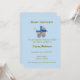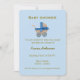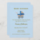 Pojkblå barnvagn, guldtypografi på cyanblå inbjudningar