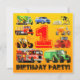 Nio lastbilar runt ett underbarare stort nummer 1! En cementblandare, blå lastbil, gult, orange, rött rullhjul, grönt, röd eldbil, gult grävare. Alla typer av byggnadstransporter. För din 1-åring på hans första födelsedag. för barn Lastbil eller Construction Party Inbjudningskort. Moderna födelsedagsfester, tillbehör, party favors och unika presentidéer i lastbil för barn i barnens konstruktion och tema i lastbil. Alla illustrationer ©Paul Stickland