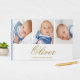 En 3-fotokollage med texten från eleganten guld i färg är grunden för gästen bok i pojke tillfälle. All information och foton ändras enkelt för din anpassningsbar gäst bok. Utformningen är i stående ensam, men den ingår i en rad baby som namnger stationär från Just Bra Design.