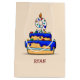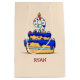 Det finns ett nummer 9-ljus fyllt med färggranulat på toppen av en blå icingkaka på framsidan av denna söta gåva, souvenir, gåva eller party. Perfekt att skicka en speciell pojke som firar sin nionde födelsedag.