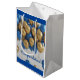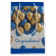 Den här presentväskan har blå ballonger och guld för en dusch i pojke.