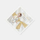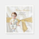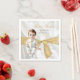 Fin vintage baby i kostym, där man döpt till en vit satängbakgrund med guld-band.