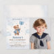 Pojke Blå Teddybjörn Ballonger Första Födelsedagsf Inbjudningar