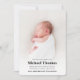 Välkomna din lilla med det här tillkännagivandet från pojke med en enkel fotomall och söt blå rand för ett tidlöst, klassiskt utseende. Designad med minimalistisk typografi och en ren fotoövertäckningstext, visningar det på ett vackert sätt din baby födelsestatus i stil. Perfekt för att dela din glädje med nära och kära, det här meddelandet blandar modern charm med traditionella turer. Anpassa din dator idag och fira din nya ankomst med elegans och värme!