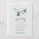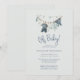 Denna söta inbjudan har en klädlinje med pojkbabykläder som hänger på linjen.