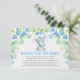 Undertemat babyduschen bok begär kort med elegant blå vattenfärgblommor och grönt löv