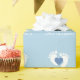 Älskvärd blått- och vitpersonligbaby shower som slår in papper. Add mamma-till-är känd. Behandla som ett barn fot i vit med hjärta i mittet. Perfekt för inpackning av din gåva- eller pojkeparty favors. Rosa bakgrund kan ändras till någon färg.