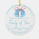 Minneshögtidlighålla er första jul som en familj av tre med denna charmerande, prydnadsande anpassade designad, särskilt för familjer som hälsar en pojke i år. På framsidan finns redigerbar fält för namn för familjen, året och annan personlig information, medan baksidan gör att du kan lägga till ditt favoritfamiljefoto. Fira denna milstolpe med en personlig som kommer att värderas i åratal till komen. Perfekt för att ha hängt på träd, den här prydnaden fångar glädjen och magin i pojke:s första jul. Anpassa i dag för att skapa ett verkligt unikt memorandum!