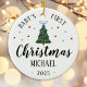 Den här Personligen är pojke första julklapp för ornament blue & grönt med bild perfekt för din baby första jul!