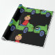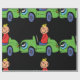 Pojke i en Grönt Car som bär en röd topp på Wrapping Papper