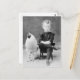 Pojke i gammaldags kläder röker sittande bredvid e vykort
