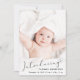 Ett modernt kort för att tillkännage din pojke födelse, med hans foto överlagrad med "Introducing" i ett snyggt-skript med en hjärtsvikt. Under ätten läggs hans namn, födelsedatum och födelsestatus till. På baksidan lägger du till ytterligare tre bilder- och personlig-meddelanden på en pastellblå bakgrund.