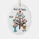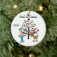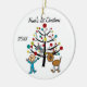 En söt runt keramiskt keepéjullägel-prydnad har en stick figur-pojke i en blå slimare framför det dekorerade Julgran med en familjekatt i träd, en hund och områden där du kan lägga till text, inklusive innevarande år och barnets namn. Det här är en bra gåva till alla pojke som firar sin första jul!