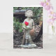 Ljusare röd ros med liten pojke som håller en baseboll och handskas med gamla vagnshjul i trädgården. För att du tänker på dig.