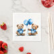 Nallar med två kärnor i pojke, med blå ballonger och med buggar på vit bakgrund.
