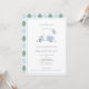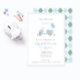 Klassisk med en ljusblå och sage-grönt golf themed babydusch-inbjudan har en handmålad golfbuggi med ballonger och en dubbla ram gräns. Jag målade upp all inslag i vattenfärgen innan den skannades in i digital form. Baksidan av inbjudan är en ljusblå och sage-grönt mönster, som jag skapat digitalt av mig.