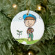 Pojke som arbeta i trädgården, plantera för träd julgransprydnad keramik