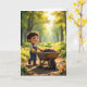 Pojke som skjuter ett Träd-stickande i en hjulbarr Kort