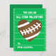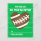 En rolig sporttemadesign med en fotbollhjärta mot en grön fältbakgrund. Texten läser "dig är all en stjärnavalentin". Personifiera dessa klassrumutbyteskort med ett namn. Baksidaen har också utrymme för ett meddelande eller att upload ett foto. http://www.zazzle.com/valentine_football_party_get_together_4_5x6_25_paper_invitation_card-256426721042476539