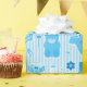 Pojkesymbolscollage på pastellfärgade blåttstreck.