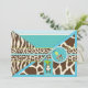 Vild- och roligt-apa som hänger på djungelvinstockar och en vild nappar med zebra, giraffe, leopard och cheetah-lapptäcken med 3D-stim-trim-rosett band-barnduschinbjudan. Färger är blues, gröntar och .