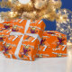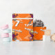 Födelsedagpojkar som slår in papper i ljus röd och musikalisk rockstar gitarristdesign för vit för orange, för svart, för grå färg, för lilor. Personifiera detta papper för pojkestjärnafödelsedagen med din namn och ålder. Läser för närvarande grattis på födelsedagen Tyler 7 i dag. Unikt illustrerat och designat vid Sarah Trett.