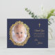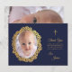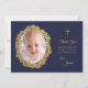 Pojkfotografier Navyblå Guld Blommig Krans Tack Kort
