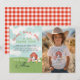 Skicka ett sött tack efter ditt lilla barns gårds kalas! Detta bedårande gårds-inspirerade tackkort har en akvarell röd lada, smågris, ko, får och kyckling, med utrymme att lägga till ditt favoritfoto från festen. Framsidan har den lekfulla frasen: “Nöff, Bää, Mu – ett stort tack!” och baksidan visar ett klassiskt rött rutmönster. Ett perfekt sätt att tacka gästerna med charm efter ditt barns 2-årsfirande!