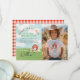 Skicka ett sött tack efter ditt lilla barns barngårdsfest! Detta underbara gårds-tema tackkort har en akvarell röd lada, smågris, ko, får och kyckling, med utrymme att lägga till ditt favoritfoto från festen. Framsidan har frasen: “Nöff, Bää, Mu – ett stort tack!” och baksidan visar ett klassiskt rött gingham-mönster. Ett perfekt sätt att tacka gästerna med charm efter din tvåårings födelsedagsfirande!
