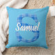 Pojknamn med bokstaven S initial. Blå barnkammare konst. Rutigt mönstertryck. Dekorativa kuddar för pojkrum. Texten kan redigeras för att göra denna poster unik.