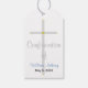 Elegant silver kor med gyllene färg accenter på märkre för bekräftelse. Anpassa med pojkens namn i blått skript och datera i svart text. Originalteckningsutkast © TamiraZDesigns.
