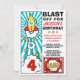 Låt en födelsedagsfest explodera med den här roligt tecknad-remsan inspirerade födelsedagsfest inbjudan med en raketsprängning av frakten i rymden. Lägg till ditt barns namn, födelseår och alla uppgifter om party. Perfekt för alla åldrar och någon som kärlek rymmer tecknad, remsor, raketer och vill ha en explosion av en födelsedagsfest.
