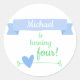 NewParkLane - Pesonalized Boy's Birthday Celebration Sticker, med ditt namn i en blå banderoll i roligtens manustypografi och ett blått hjärta. Alla textmallar är lätta att justera i Zazzle! Det här färg-systemet passar in i Cute Baby Bunny Collection. Checka ut den här samlingen för matchande objekt, t.ex. blöjor, pappert tallrikar och så vidare. Har du någon särskild personlig design för önskemål? Kontakta mig gärna!