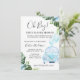 Cute car parad social avstånd eller karantänerar den blåa-duschinbjudan till barn i baby med en blå bil, ballonger, blommor och tropisk lövning. Underbarare för en pojkars chaufför som kör genom parad barnduschinbjudan för karantäntid.