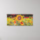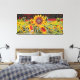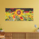 En abstrakt fält av solblommor, med röd och svart polka punktbakgrund.