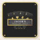 Svarta och gyllene pokertematiserade möhippa-coasters med fyra ess och marskalks-tecken. Personifiera den med brudgummens evenemangsuppgifter.