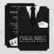 © Sunny Mars Designs - Pinstripe Suit: Pokerbiljettform Casino Sällgubbsfest-inbjudan - Anpassningsbar Las Vegas-kasinonatt eller poker natt sällgubbsfest inbjudan med en svart och grå eller grå randig kostym eller smoking, en svart slips och vit skjorta med en uppsättning av fyra ess som sticker ut ur fickan. Anpassa den genom att lägga till ditt eget namn och detaljer. Du kan ändra teckensnitt och storlek genom att klicka på "Anpassa"-knappen.