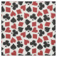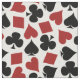 Detta poker inspirerade hantverktyg har ett seamless mönster som göras av att leka kortet för att pryda kostymer. Spadar, klöver, hjärtor och diamantpassform tillsammans i svart och rött på en vitbakgrund. Denna tyg ska look som är underbar i ditt modiga rum, om du älskar någon typ av kortspel, från poker till euchren, överbryggar, whisten eller blackjacken.