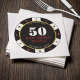 Coola, svarta, vita, röda och guldfärgade pokermarker till 50-årsfirande, servetter för kasino. Anpassa det med dina evenemangsuppgifter.