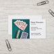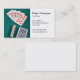 den yrkesmässiga visitkortdesignen med royalspolningen, pokerkort pryder och tärnar på en grön trasabakgrund