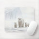 En familj av polar står tillsammans mot bakgrund av ett stort landskap i isigen