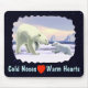 En polar björn unge vill ha försäkringar från mor på arktiska issäcken. Texten "Kall Nose Warm Hearts" och ett rött hjärta visas också. Allt på en startfältsbakgrund.
