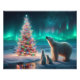 Polar Bear Mamma Unge Julgran Aurora Borealis Fototryck