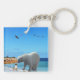 Bild på stranden är en Polar björn som träffar en rävskrämmare.