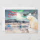 Välkommen till Nordpolen! En vänlig trio av penguiner och en hedervärd polar hälsar på er när ni komar till Nordpolen. Tomten ser ut som en kameo i bakgrunden. Anpassa ordspråket så att det passar dina behov. Familjer och vänner kommer att bli glada över att få ert djurvänliga julhälsningskort.