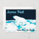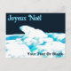 En något stiliserad, blåtonad bild av en Polar Bear (Ursus maritimus) som vilar på polarnas isförpackning på en mörk, månbelyst vinternatt. Franskens text, "Joyeux Noё l", visas i blått och vitt. Lägg till ytterligare text.
