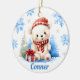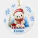 Ta med vindruvscharm till träd med den här vackra personlig polarna med prydnadsföremål! Med en vattenfärgsbjörn i en röd halsduk och hatt, med en gåva och sitta mellan träd och snöflingor, innehåller den här keramiska keepsakén ditt barns namn i blått skript. En helgdag i perfekt till småbarn, barn eller baby första jul gör den här prydnaden en tankfull keepé som de ser fram emot att få sitta år efter år.