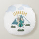 A unique, whimsical round pillow featuring a cartoon polar bear playing a turquoise cello against a background of mountains and clouds. This playful and artistic design is personalized with the name "Leonardo," making it a distinctive and fun decorative item for a child's bedroom or nursery.